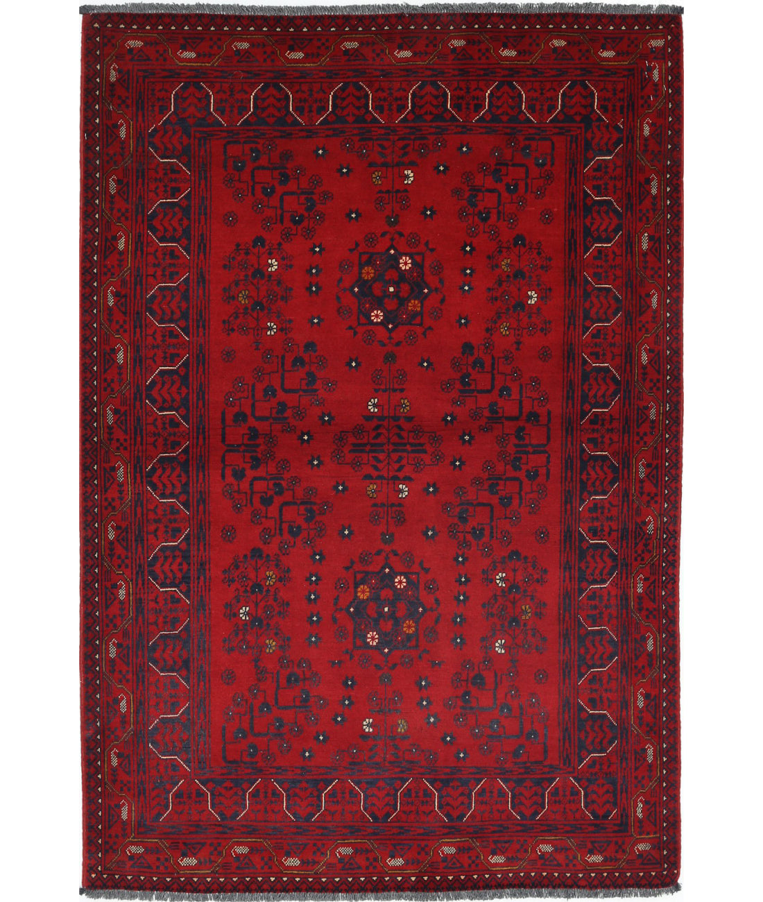 Afghan 3' 4" X 4' 9" Hand Knotted Wool Rug