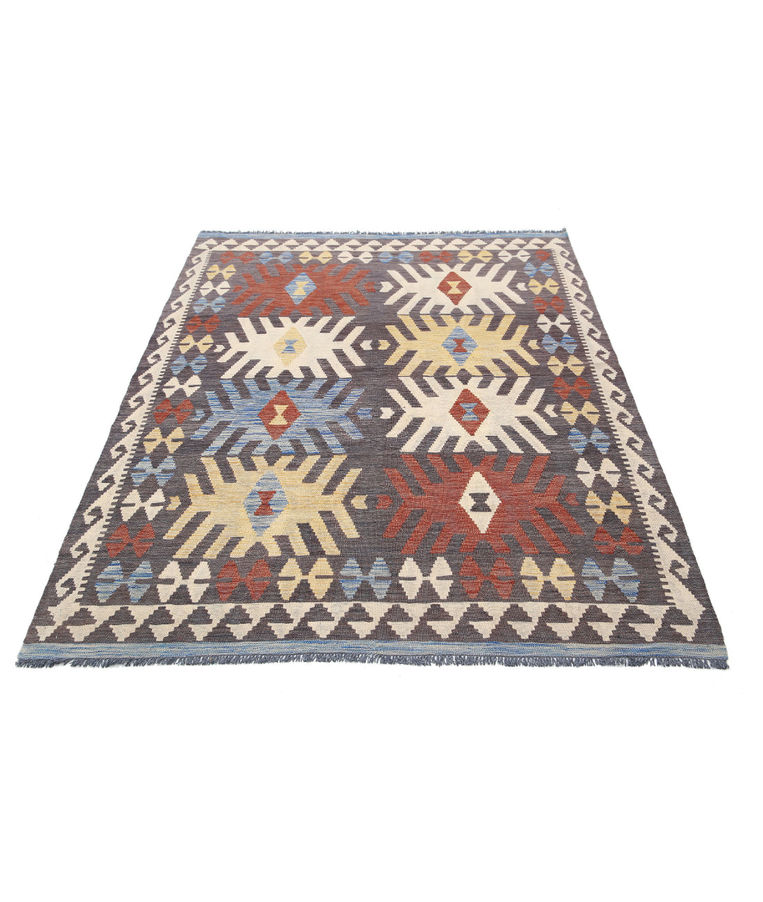 Maimana Kilim 4' 9" X 6' 6" Hand Knotted Wool Kilim
