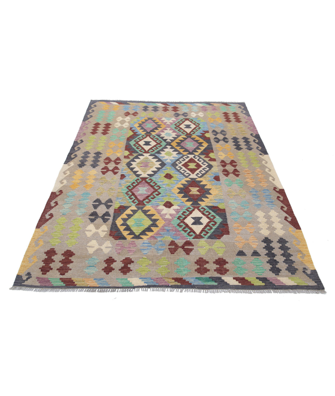 Maimana Kilim 4' 11" X 6' 5" Hand Knotted Wool Kilim