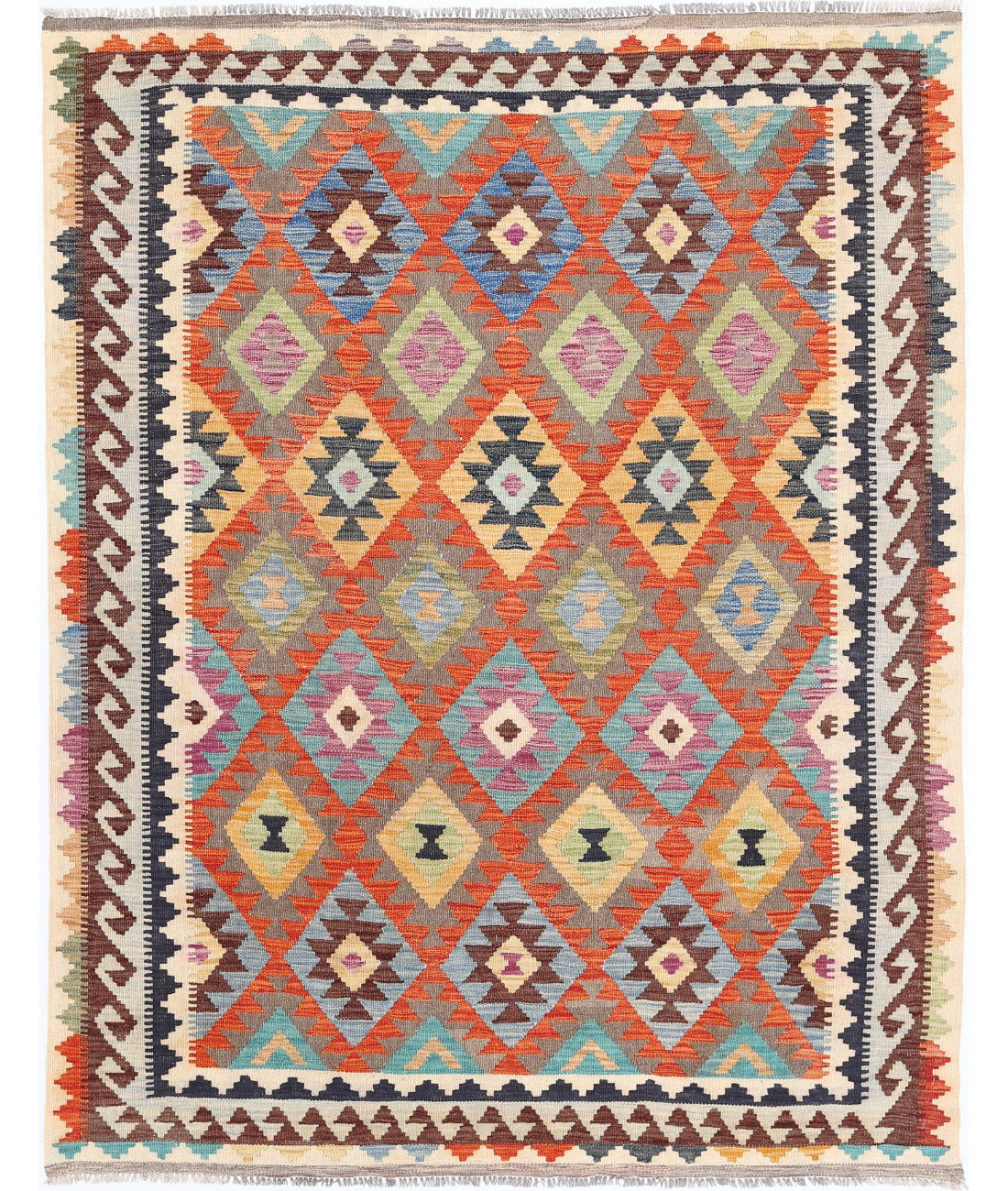 Maimana Kilim 5' 1" X 6' 9" Hand Knotted Wool Kilim